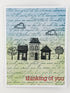 From My Heart to Your Doorstep. This Thinking of You card features original mixed media artwork with cozy houses nestled in the background—a gentle reminder that someone cares, no matter the distance. Printed on fine linen paper and mounted on heavyweight white cardstock, it's a meaningful way to send warmth, encouragement, or a simple “you’ve been on my mind.” Sized at A2 (4.25" x 5.5"), it’s perfect for thoughtful notes that feel like home.