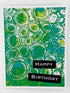 Celebrate in color with this vibrant green Happy Birthday card, featuring bold graphic design and original mixed media artwork. Printed on fine linen paper and mounted on heavyweight white cardstock, it's a statement piece for any celebration. Sized at A2 (4.25" x 5.5"), it’s just the right size for your most festive birthday wishes—no confetti required (but encouraged).